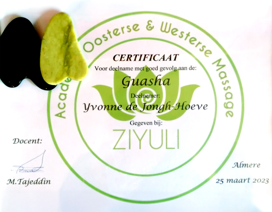 is een behandeling met een gepolijst instrument op de huid (rug). De betekenis is letterlijk “het wegschrapen van de pijn”. Schrapen klinkt pijnlijker dan dat is. Het doel is om opgeslagen afvalstoffen te verwijderen en een betere energiestroming te verkrijgen waardoor men zich weer fris , helder en energiek voelt . Het heeft een enorme dieptewerking en daardoor vooral goed te gebruiken bij schouder- en nekklachten , maar ook bij migraine en rugklachten. Deze behandeling is ook gedeeltelijk te combineren met een andere behandeling (bv bij nek/schouder).